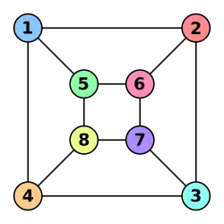 Andere automorfismen van de bovenste graaf zijn (5 6)(7 8) of (1 2)(3 4)(5 6)(7 8) wat men kan beschouwen als een verticale spiegeling van de graaf, of (1 7)(2 8)(3 5)(4 6) wat overeenkomt met een horizontale spiegeling.