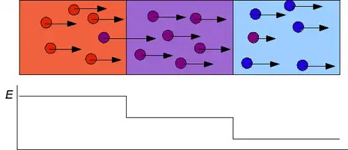 De ionen in de zone met LE hebben kleinere snelheid dan je op grond van alleen de mobiliteit zou verwachten. Conform de formule wordt dit gecompenseerd door een kleiner elektrisch veld. Hetzelfde geldt voor de andere zones. Iedere zone heeft dus een eigen elektrisch veld, dat in de TE het hoogst is en bij iedere volgende zone trapsgewijs afloopt.