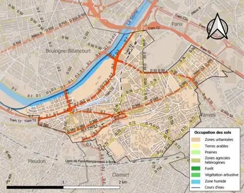 De onderstaande kaart toont de ligging van Issy-les-Moulineaux met de belangrijkste infrastructuur en aangrenzende gemeenten.