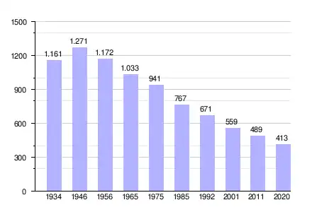 Van de 489 inwoners die in februari 2011 werden geregistreerd, waren er 80 jonger dan 15 jaar oud (16,4%), gevolgd door 317 personen tussen de 15-64 jaar oud (64,8%) en 92 personen van 65 jaar of ouder (18,8%).[3]