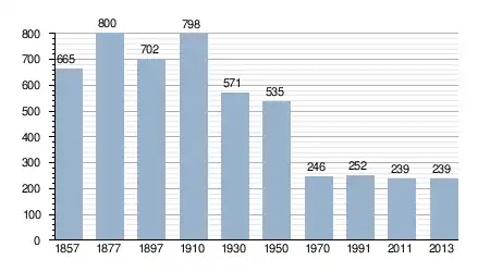 - Bron: INE, 1857-2011: volkstellingen