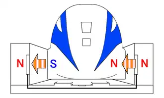 De JR-maglev maakt gebruik van een Electro-dynamic Suspension (EDS) systeem. Dit werkt door onderin dezelfde magnetische polen te gebruiken en bovenin verschillende. Dit zorgt voor een dubbele werking.