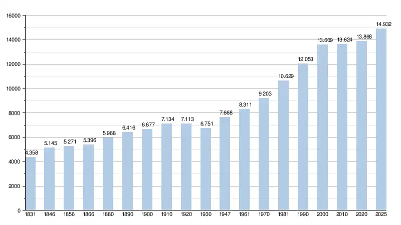 Alle historische gegevens hebben betrekking op de huidige gemeente, inclusief deelgemeenten, zoals ontstaan na de fusie van 1 januari 1977.