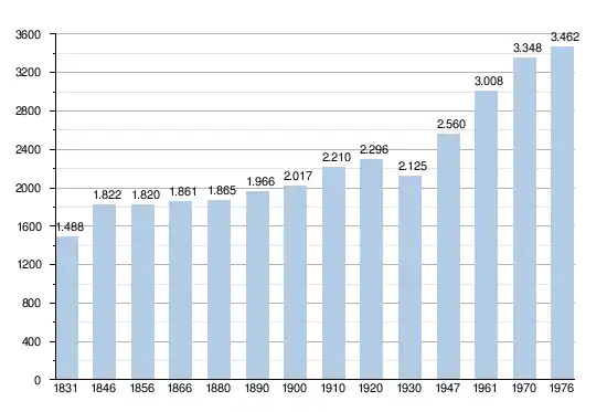 - Bronnen:NIS, Opm:1831 tot en met 1970=volkstellingen; 1976 = inwoneraantal op 31 december