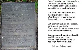 - In de Noordmolen hangt een kalligrafie van het Twents volkslied die, blijkens het onderschrift, een geschenk aan Van Deinse was voor diens 70e verjaardag.