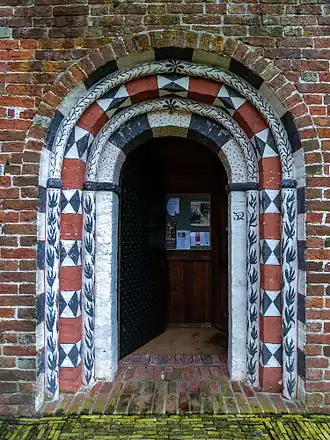 De bezoeker betreedt de kerk tegenwoordig via de noordelijke ingang aan de wegzijde. Daarachter bevindt zich een tochtportaal. De kerk maakt door haar rode zeer hoog oprijzende muren en gewelven een ruime indruk op de toeschouwer. De muren aan binnenzijde zijn rood gesausd met witte schijnvoegen; blokbepleistering die tussen 1250 en 1350 bij kerken binnen het bisdom Münster in zwang was om de baksteenkleur ook aan binnenzijde te kunnen benadrukken. Dit kleurrijke patroon is bij de restauratie in de jaren 1960 weer in de vroegere staat hersteld.