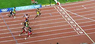 | Usain Bolt | serie 5: 2de in 20,64 kwartfinale 1: 1ste in 20,29 halve finale 2: 1ste in 20,09 finale: 1ste in 19,30 (WR) | ||