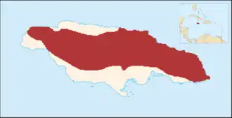 | Verspreidingsgebied van de Jamaicaduif. | |||||||||||||