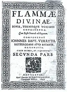 Er is maar één bundel muziek van Verrijt bewaard gebleven, de Flammae divinae uit 1649, met achttien motetten en twee missen voor twee tot drie stemmen en basso continuo. Deze stukken zijn geschreven in de destijds gangbare Italiaanse concertato-stijl, voor solostemmen en continuo, en hebben een sterk polyfone inslag. De teksten zijn duidelijk van katholieke signatuur.