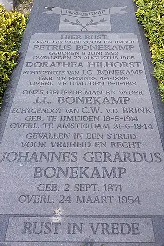 - ↑ De Westerbegraafplaats in IJmuiden – Jan Bonekamp. Gearchiveerd op 28 november 2021. Geraadpleegd op 9 december 2021.