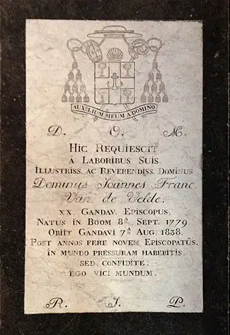 - Jan-Frans Van De Velde, uit de "De geschiedenis van het bisdom Gent" door Emiel Lamberts