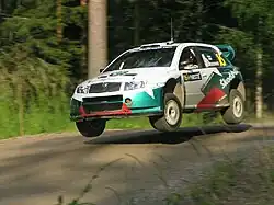 Paasonen in zijn rallyauto in 2001