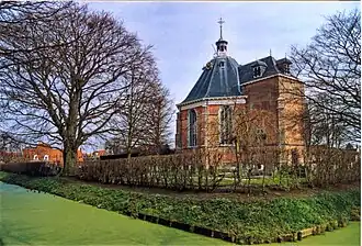 - ↑ Prins Maurits, die een bedrag van 7000 carolus gulden toekende voor de bouw van een kerk had de wens geuit dat de kerk rond of achthoekig werd gebouwd, voor de protestantse eredienst. Het was de eerste kerk in Nederland als zodanig ontworpen. De traditionele kruisvorm der katholieke kerken was niet meer nodig: geen koor of kapellen. De kansel stond centraal in plaats van het altaar (volgens Heemkundekring Willemstad, C. van Mastrigt).