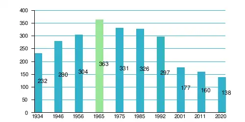 Van de 160 inwoners die in februari 2011 werden geregistreerd, waren er 23 jonger dan 15 jaar oud (14,4%), 114 inwoners waren tussen de 15-64 jaar oud (71,2%), terwijl er 23 inwoners van 65 jaar of ouder werden geteld (14,4%).[3]