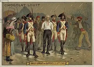 Toen Bailly, die zijn wetenschappelijke carrière terug opgenomen had, in juli 1793 een bezoek bracht aan Pierre-Simon Laplace in Melun werd hij gearresteerd. Hij werd opgeroepen als getuige tegen koningin Marie-Antoinette op haar proces maar weigerde. Hij werd op 10 november voor het Revolutionair tribunaal gebracht in het Palais de la Cité en de volgende dag veroordeeld tot de doodstraf. Op 12 november 1793 werd hij geguillotineerd op de Champ-de-Mars.