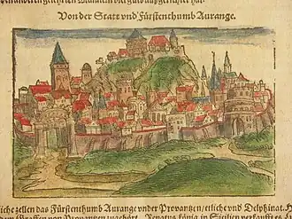 - ↑ Het Romeinse cijfer VI verwijst naar de 6e bisschop van Orange met de naam Jean.