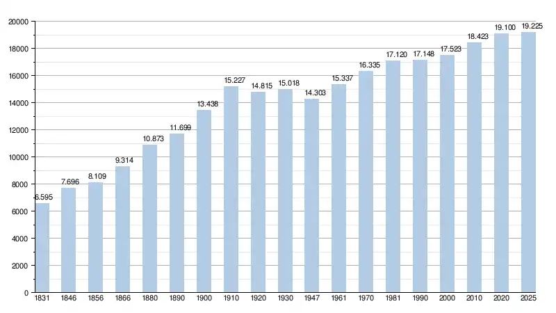 Alle historische gegevens hebben betrekking op de huidige gemeente, inclusief deelgemeenten, zoals ontstaan na de fusie van 1 januari 1977.