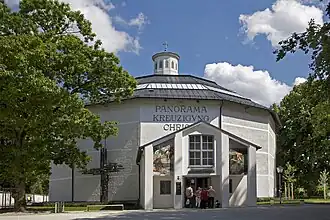 Een panoramaschilderij vereist, om het te tonen, een specifiek eigen panoramagebouw. Het panorama in Altötting behoort met een hoogte van 15 meter (zonder het torentje) en een diameter van 30 meter tot de middelgrote panorama's. De plattegrond van het panoramagebouw is een regelmatige twaalfhoek.