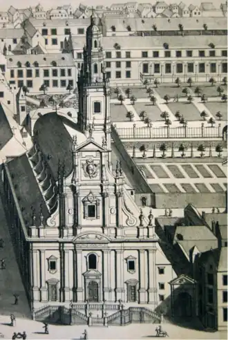 Na de afschaffing van de orde in 1773 werd het Brusselse Jezuïetencomplex geconfisqueerd en verkocht. De kerk werd in 1812 gesloopt en het bijhorende klooster omgebouwd tot gerechtshof door François Verly. Het gebouw was in gebruik van 1820 tot 1892, jaar waarin het Justitiepaleis gereed kwam. Overblijfselen van de kerk bevinden zich onder het huidige Gerechtsplein (vroeger: Paleisplein). Van het geveluitzicht kan men zich nog een goed beeld vormen door de Drievuldigheidskerk van Elsene, waarvan de gerecupereerde voorzijde eveneens door Jacques Francart ontworpen is (1620).