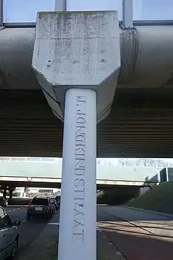 - om voldoende hoogte te houden voor doorgaande vrachtverkeer moest de Johan Jongkindstraat plaatselijk verlaagd worden.