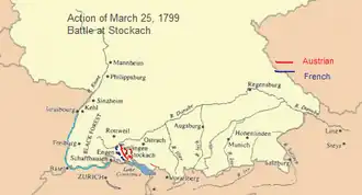 In de Slag bij Stockach op 25 maart 1799 versloeg hij met een cavaleriecharge de Franse cavaleriereserve onder Jean-Joseph Ange d'Hautpoul. Hij kreeg er het ridderkruis in de Orde van Maria Theresia voor in augustus 1801.