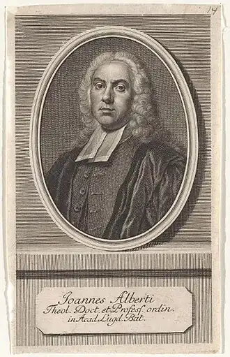 Johannes Alberti werd geboren in de enige korenmolen die Assen in 1698 bezat. Op de Latijnse school ontwikkelde hij zijn grote interesse voor wetenschap en literatuur. Op 17-jarige leeftijd liet hij zich inschrijven aan de Universiteit van Franeker, waar hij op kosten van de Friese edelman Burmania kon studeren. Tijdens zijn 6-jarige studie is hij diepgaand beïnvloed door de classicus Lambertus Bos en de theoloog Campegius Vitringa, die als Friese professoren een zeer grote naam hadden in Europa. In 1723 werd Alberti predikant in het Noord-Hollandse dorp Hoogwoud, daarna stond hij twee jaar in Krommenie en twaalf jaar in Haarlem. Op 5 oktober 1740 aanvaardde Alberti een hoogleraarschap in de theologie aan de Universiteit van Leiden. In 1749 bleek, dat Alberti aan tuberculose leed. Na een langdurig bezoek aan de badplaatsen Aken en Spa trad weliswaar herstel in, maar hij hield er een gedeeltelijke verlamming aan zijn handen aan over. Hoewel hij nauwelijks meer een bladzijde kon omslaan, belemmerde dat hem niet om, als een van de weinigen in zijn tijd, zich bezig te houden met de studie van de Noordse mythologie. In 1762 werd hij geteisterd door een aanval van roodvonk, waaraan hij binnen enkele weken overleed.