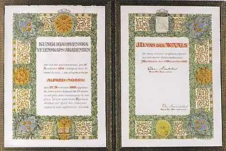 | Reden | "Voor zijn verrichtingen op het gebied van de toestandsvergelijking van gassen en vloeistoffen." | |||