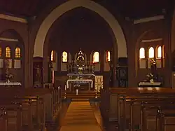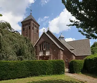 De kerk is een kruiskerk, van binnen en buiten uit baksteen opgetrokken met enkele witgeschilderde siervlakken. Het gewelf is bekleed met hout.