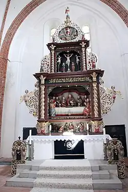 Het altaar van de kerk werd in het atelier van de houtsnijder Hinrich Cröpelin uit Esens gebouwd. Op de predella wordt de geboorte van Jezus en in het hoofdveld het Avondmaal getoond. Daarna volgen de Kruisiging en de Opstanding. Het altaar wordt bekroond met een voorstelling van de triomferende Christus.