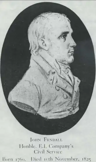Op 16-jarige leeftijd trad Fendall in dienst van de Engelse Oost-Indische Compagnie, 'the British Honourable East India Company'. In 1790 had hij in dienst van die compagnie als 'Senior Merchant' (opperkoopman in de terminologie van de VOC) de functie van 'Collector' (districtshoofd) van Midnapur/Midnapore in Bengalen bereikt. Na 31 jaar in India te hebben gewerkt reisde Fendall in 1809 voor het eerst weer terug naar Londen.