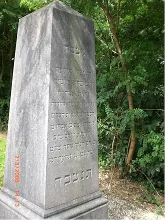 - Vertaling grafschrift Hebreeuws: Hier rust een rechtschapen en goed man, hij deed goed voor de armen. Gedurende zijn leven beliefde hij de Tora en deed aan godsdienstig werk en deed weldaden. Hij was Tuvia zoon van Pin'has Hacohen. Zijn ziel steeg ten hemel op donderdag 9 tevet en hij werd begraven op zondag de twaalfde van dezelfde maand 5663.