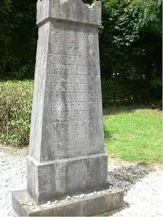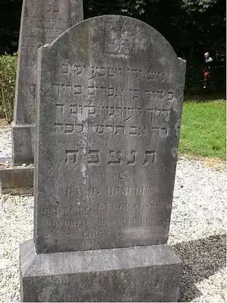 - Vertaling grafschrift Hebreeuws: Hier rust een oud man, verzadigd van dagen, de geëerde David zoon van Efraim Baruch, hij ging naar zijn eeuwigheid op woensdag de eerste dag av 5658.