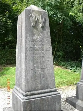 - Daaronder in het Nederlands: Den onvergetelyken echtgenoot en vader Jacob Caan overleden in het 63 levensjaar den 3 kislew 5643 14 november 1882.