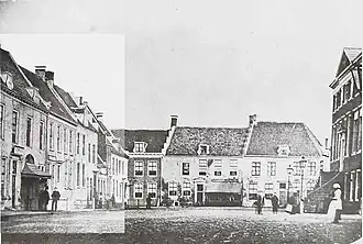 Foto van de Markt in Wijk bij Duurstede uit ca 1850. Mogelijk de alleroudste foto met een stadszicht van Wijk bij Duurstede. Fotograaf onbekend.[25]Hoewel het gros van de oudste foto's van Wijk bij Duurstede van Van Rhedens hand waren, was hij niet de enige fotograaf in Duurstede en waarschijnlijk niet de eerste, in tegenstelling tot de claim dat Van Rhedens foto van de Veldpoort de oudste foto is die in Wijk bij Duurstede is gemaakt.[15] Dit is onzeker gezien het bestaan van de foto hiernaast met de Markt in Wijk bij Duurstede, met een geschatte datering van halverwege de negentiende eeuw.