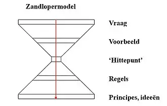 Het zandlopermodel geeft de logische structuur van een socratisch gesprek weer: een brede, algemene vraag wordt toegespitst op een concreet, zelf ervaren voorbeeld, en verder op een cruciaal moment daarin, het ‘hittepunt’ waar de vraag urgent aan de orde is (een handeling, ervaring of moment van oordeel). Vervolgens wordt in het gesprek onderzocht wat de vooronderstellingen zijn van dat moment, niet alleen bij de casusgever, maar ook via verplaatsing bij de andere deelnemers. Op grond van vergelijking, toetsing en doordenking probeert men tot de onderliggende principes te komen. Op die manier wordt een fundamentele vraag naar een fundamenteel antwoord geleid door de gezamenlijke analyse van één enkele concrete ervaring.