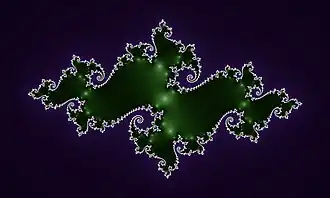 Behalve dat in de berekening van de punten die element van een juliaverzameling zijn een herhaling voorkomt, komt in de vorm van de juliaverzameling ook een herhaling voor. De juliaverzameling is een fractal.