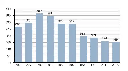 - Bron: INE, 1857-2011: volkstellingen