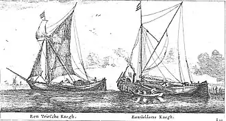 - ↑ Spelling van 1858: een Hollandsch vaartuig op de binnenrivieren, naar eene smak gelijkende (Gevonden op https://www.encyclo.nl/lokaal/10608). Gearchiveerd op 30 juni 2023.