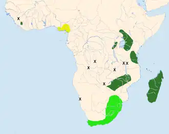 | Verspreidingsgebied van de Kaapse gierzwaluw. | |||||||||||||