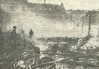 De poort van de fabriek op de hoek van de Bleekhofstraat en de Montenstraat werd bewaakt door de rijkswacht en gewapende brandweer. Daar braken rellen uit en de politie schoot aanvankelijk met losse patronen. Maar zodra de ter plaatse zijnde Lodewijk Moorkens, burgemeester van de toenmalig onafhankelijke gemeente Borgerhout, met stenen werd bekogeld gaf hij het bevel met scherp te schieten. Er vielen vijf doden en veel gewonden die naar het Sint-Erasmusziekenhuis werden gebracht.