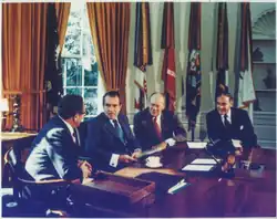 - ↑ a b c d e f g h i j k l m n o p q r s t u v w x y z aa ab Functie gecontinueerd in het volgende Kabinet-Ford