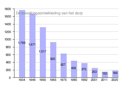 Het inwonertal van het dorp nam tussen 1934 en 2011 continu af (van een maximum van 1.769 tot een minimum van 150 personen). Volgens de meest recente schatting telde het dorp 184 inwoners op 31 december 2020, een stijging ten opzichte van 2011.[2]
