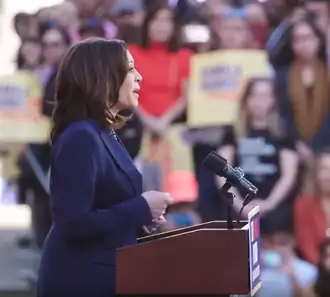 Kamala Devi Harris (Oakland, Californië, 20 oktober 1964) is een Amerikaans politica en was van 20 januari 2021 tot 20 januari 2025 de 49e vicepresident van de Verenigde Staten. Ze is lid van de Democratische Partij en was bij haar inauguratie de eerste vicepresident van Afro-Amerikaanse en Aziatisch-Amerikaanse afkomst en tevens de eerste vrouwelijke vicepresident.[1] Eerder was Harris openbaar aanklager van San Francisco van 2004 tot 2011, procureur-generaal van Californië van 2011 tot 2017 en senator voor Californië van 2017 tot 2021. In 2024 was zij presidentskandidaat namens de Democratische Partij. Zij verloor die presidentsverkiezingen van Donald Trump, die een tweede termijn zeker stelde.