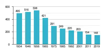 In de eerste volkstelling van 1934 registreerde het dorp 495 inwoners. Dit aantal nam toe tot een hoogtepunt van 538 personen in 1956. Sindsdien daalt het inwonersaantal. Op 31 december 2019 telde het dorp 148 inwoners.[1]