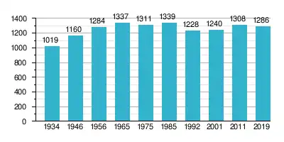 In de eerste volkstelling van 1934 registreerde het dorp 1.019 inwoners. Vanaf 1956 schommelt het inwonersaantal tussen de 1.200 à 1.350 personen. Op 31 december 2019 telde het dorp 1.286 inwoners.[1][2]
