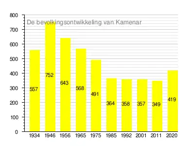 Op 31 december 2020 werden er 419 inwoners in het dorp Kamenar geregistreerd door het Nationaal Statistisch Instituut van Bulgarije, een stijging ten opzichte van 2011, maar een daling ten opzichte van het maximum van 752 inwoners in 1946.[1]