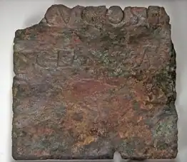 - ↑ Afkomstig van een standbeeld van een Romeinse keizer. Deze standbeelden werden overal in het Romeinse rijk opgesteld om de inwoners te laten zien wie hun staatshoofd was.