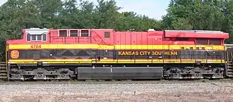 Een nieuwe (2008) KCS ES44DC locomotief in Pittsburg (KS).