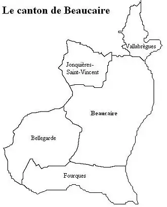 Het kanton Beaucaire omvatte tot 2014 de volgende 5 gemeenten: