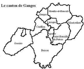 Ganges is een voormalig kanton van het Franse departement Hérault. Het kanton maakte sinds november 2009 deel uit van het arrondissement Lodève, daarvoor behoorde het tot het arrondissement Montpellier. Het werd opgeheven bij decreet van 26 februari 2014 met uitwerking op 22 maart 2015. Alle gemeenten werden toegevoegd aan het kanton Lodève.